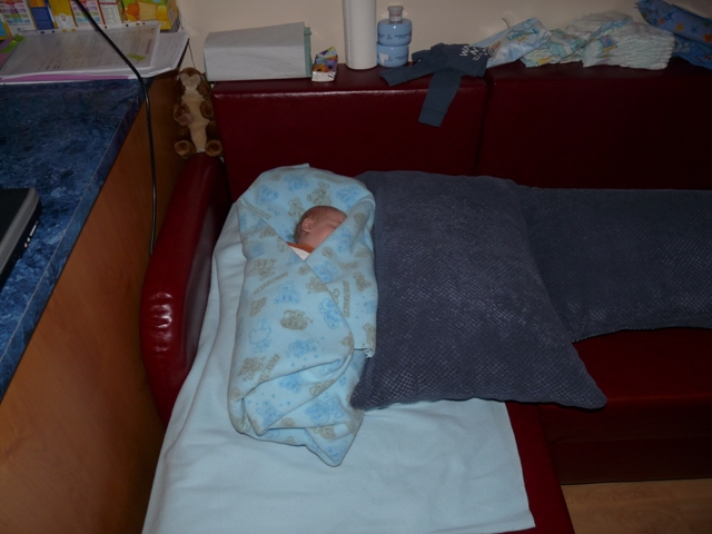 Zato Mates si žádá noční pozornost. Včara ho taťka choval, aby usnul a dívali se tak spolu 3 hodiny na TV, než byl čas na další kojení. Dnes to táta udělal odvážněji a přesunul se s prckem dolů. Máma si od 20:45 mohla zdřímnout (teď je 23:19 a stále oba spí :o) ), a táta se u občasného chování stihl navečeřet, osprchovat a udělat slušný kus práce na PC. Škoda, že jde táta už ve středu do práce. - Má ale v březnu několik směn volno, tak si ho víc užijeme.